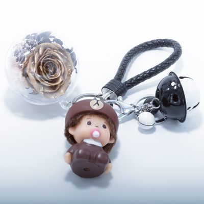 Everlasting Rose® color: Red Acrylic ball diameter: 2 in Everlasting Rose® diameter: 1.4 in
